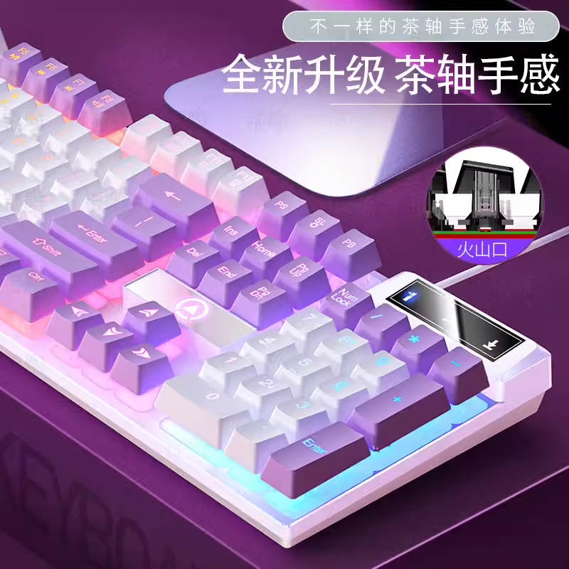 电竞茶轴红轴鼠标套装笔记本台式电脑圆键外设